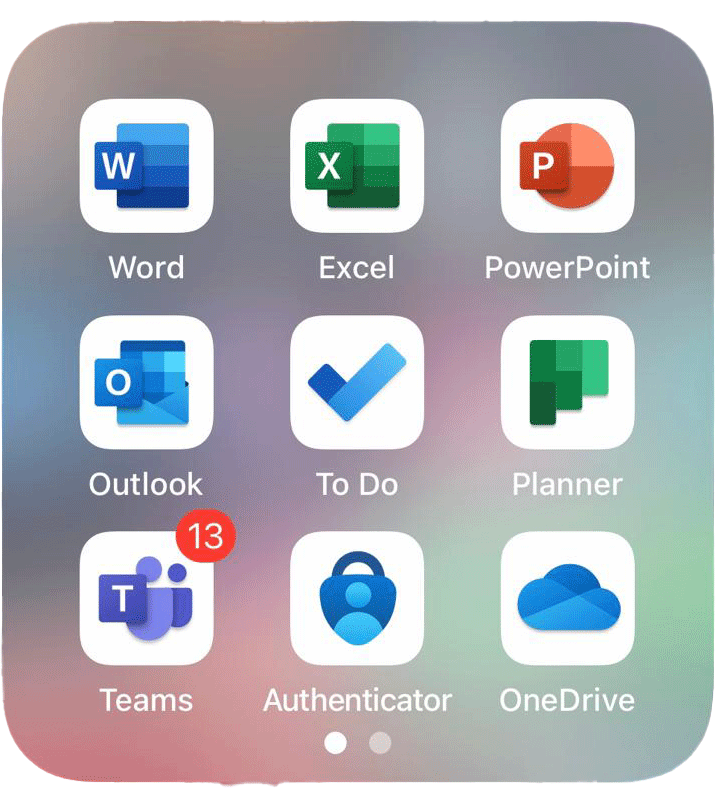 5. For Smartphones, download, install, and group together these apps with the same logo by searching Microsoft + these names and clicking on the one with the same logo.